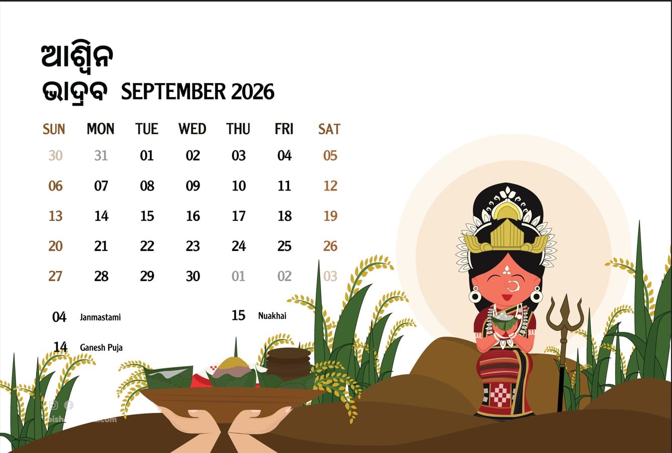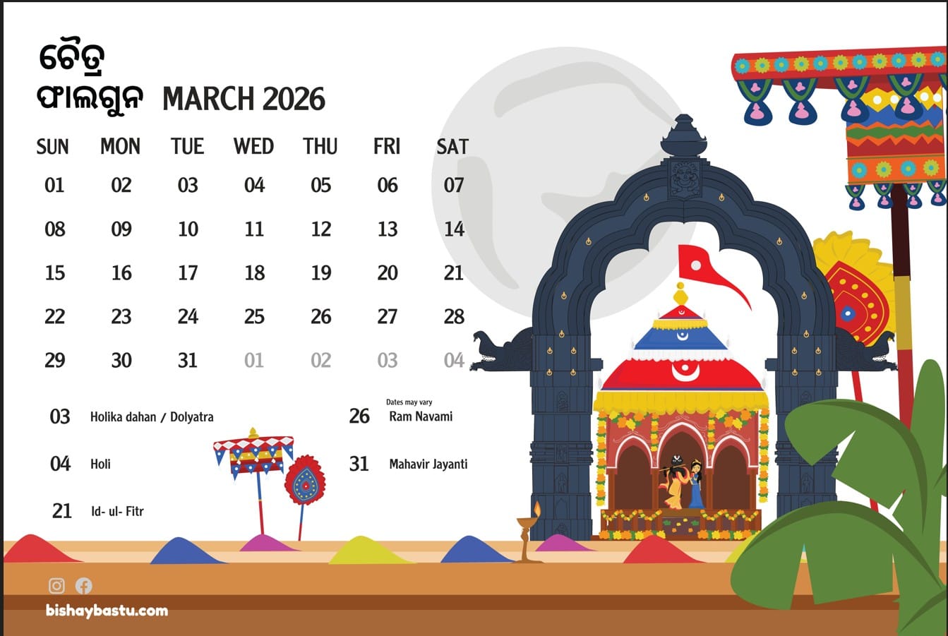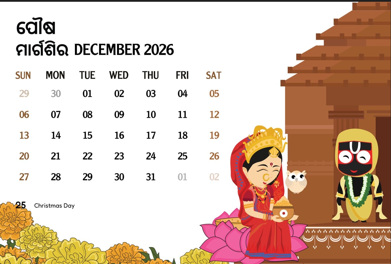 Bara Mase Tera Parba Desk Calendar 2026 – Odia Festival Calendar