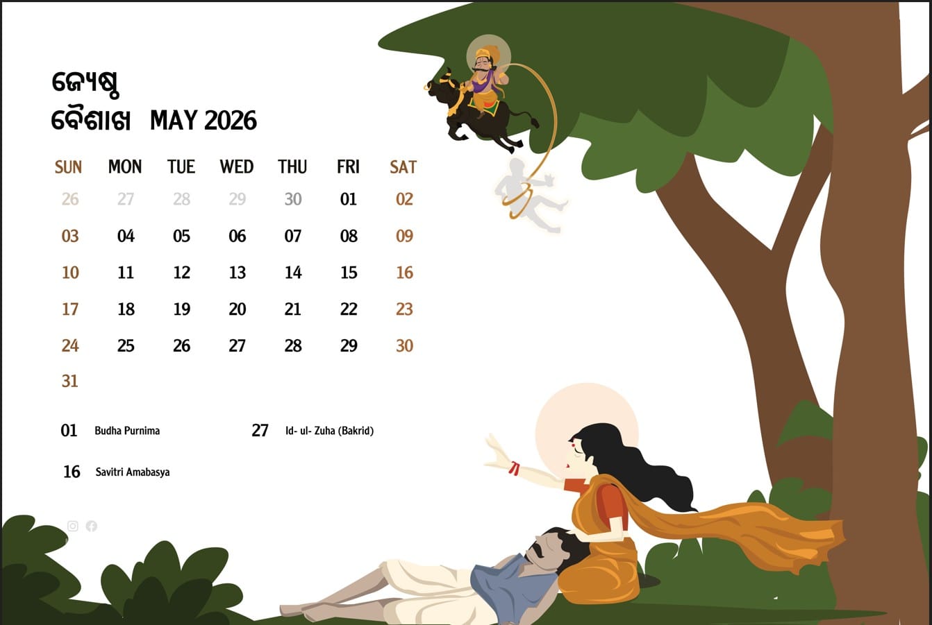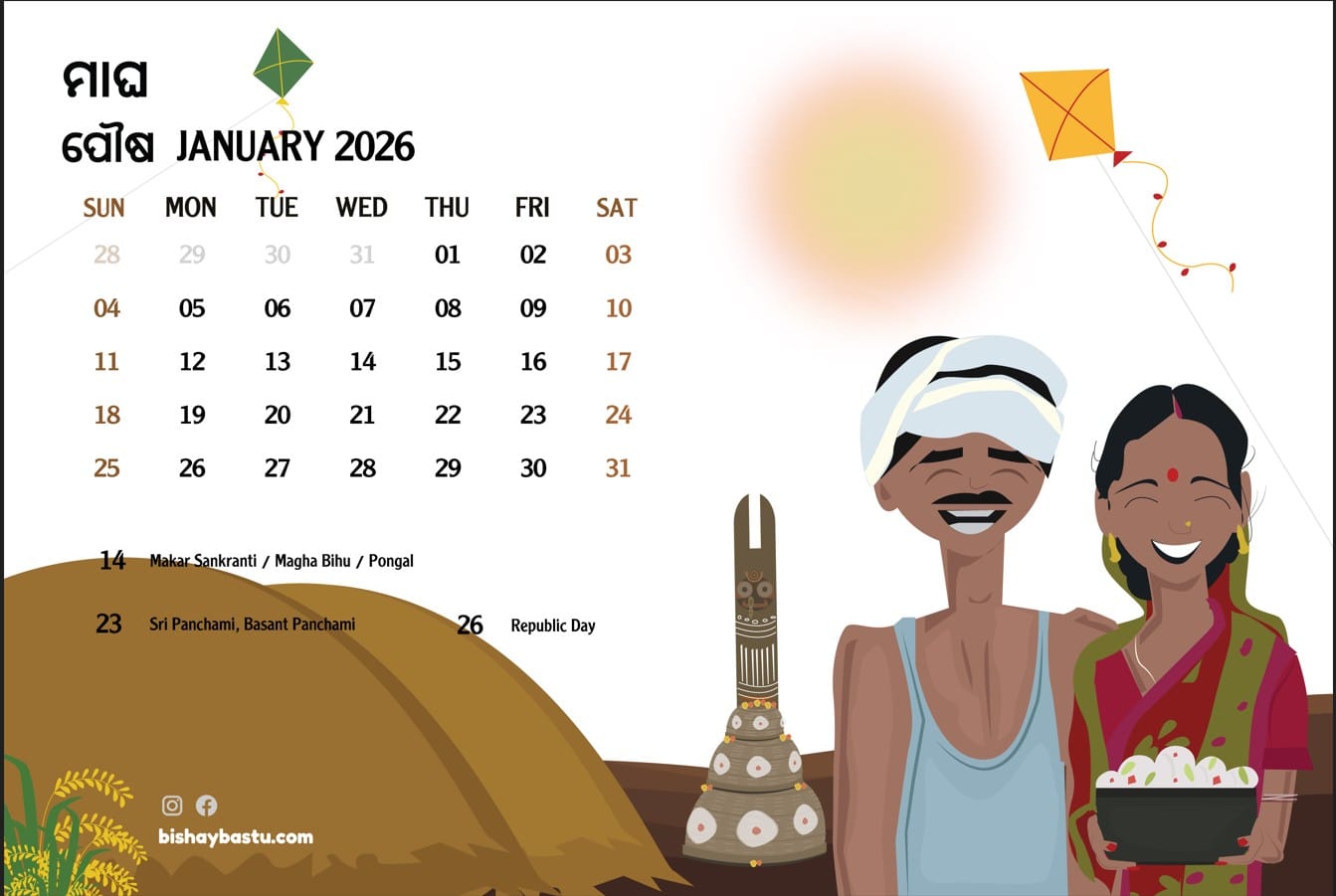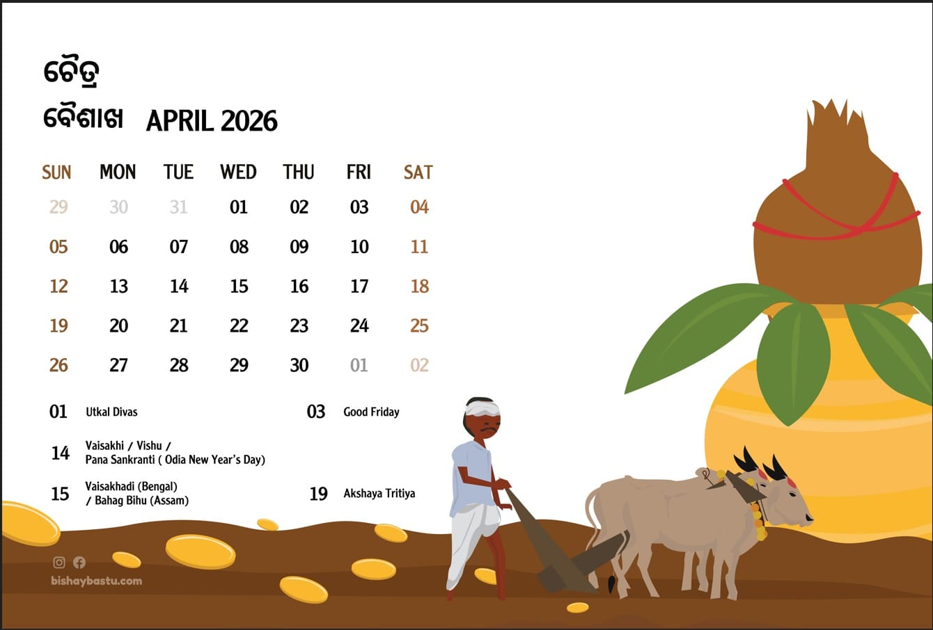 Bara Mase Tera Parba Desk Calendar 2026 – Odia Festival Calendar
