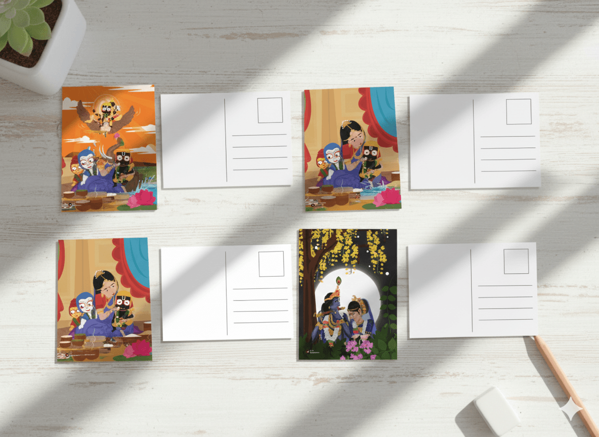 A curated set of 5 A5 postcards celebrating Odia devotion and art — perfect for gifting, framing, or sending as blessings.